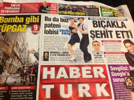 After ice-dancing pair Alper Uçar and Alisa Agafonova, representing Turkey in the 2014 Winter Olympics in Sochi, were eliminated from the short dance program competition, Turkish newspaper Haberturk knew just who to blame: The ice skating lobby.